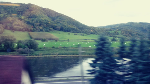 The countryside begins to change a bit as we head north. Lots of rain, of course, but also more trees (and more castles on hills). There was a river (the Elbe I think?) that ran alongside the tracks for most of the trip, which was really beautiful.