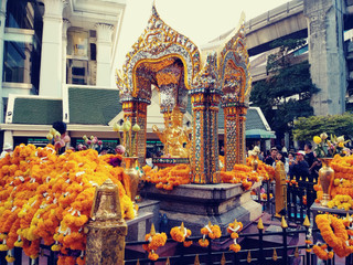 First stop is the Erawan Shrine which was packed. It is an outdoor shrine that was attacked by terrorists back in 2015 with a bomb that killed 20 people and injured many more when it went off at 7pm during evening rush hour. You wouldn't know it by the crowds around it today.