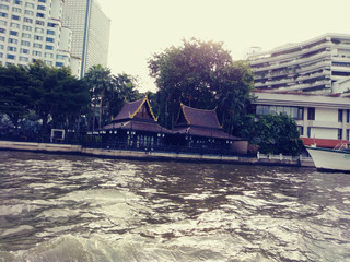Go big or go home, right? So I started today with the Grand Palace--the biggest in town--and also the most crowded. I had read that it was best to go first thing in the morning, because of the crowds, so I got up early and took the train to the main boat pier and took a boat up the Chao Praya river to the Grand Palace. This was my first real look at the financial disparity of Bangkok...unlike some cities where there are poor areas of town and rich areas of town...everything here is mixed together. There will be an abandoned building next to a giant high rise.