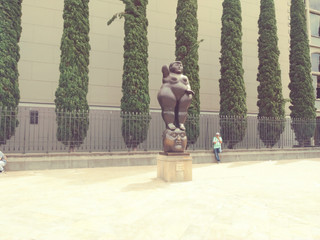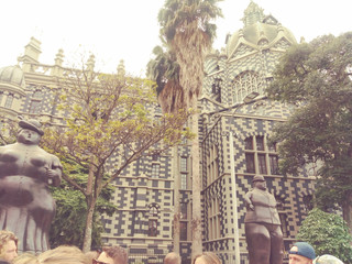 Next we walked to Plaza Botero, where the Palace of Culture--a building begun by a Belgian designer that the Paisas thought was taking too long so they decided to finish it themselves (so there is a beautiful main facade, and then a really boring rest of it, lol)--and the Museo de Antioquia (the name of the region) are located, as well as several Botero sculptures around the square. We have a brief break, and one of Juan's suggestions is to try the empanadas at a small stand here on the square called Empanadas Envigadenas. They had meat ones and potato ones...DAMN delicious. Especially with the guacamole sauce. And cheap--less than a dollar each. I wound up going back after the tour and having another one.