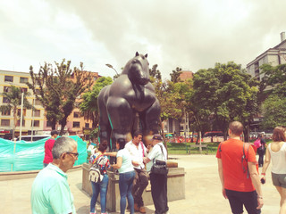 We walked through a few of the MANY shopping areas here--both inside and out. We walked through the crowded Parque Berrio (where an older man came over to meet us and tell us that we had better not leave the city...or he would come and bring us back :-) Then we headed to San Antonio park where some people were rehearsing a dance...but the rest of the square was eerily quiet compared to some of the others we visited. This is because a bomb went off in this square in the 80s, destroying the Botero on the left, killing 23 people. The mayor at the time was going to remove the remains of the statue, but Botero called him and asked that it stay as a reminder...then he created a new one on the right. The two together remind everyone of the past and present of Medellin.