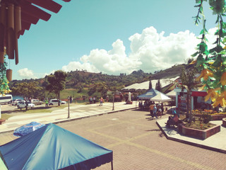 Woke up early (before 6am) so I could get ready and get myself to the meeting point in Poblado (a neighborhood in Medellin). I took the metro to the Poblado station, then walked into the main square--Parque de Poblado (all uphill, of course). This is mainly a business area, but they have various vendors here in the park with food and trinkets. Not much to see beyond a few murals.