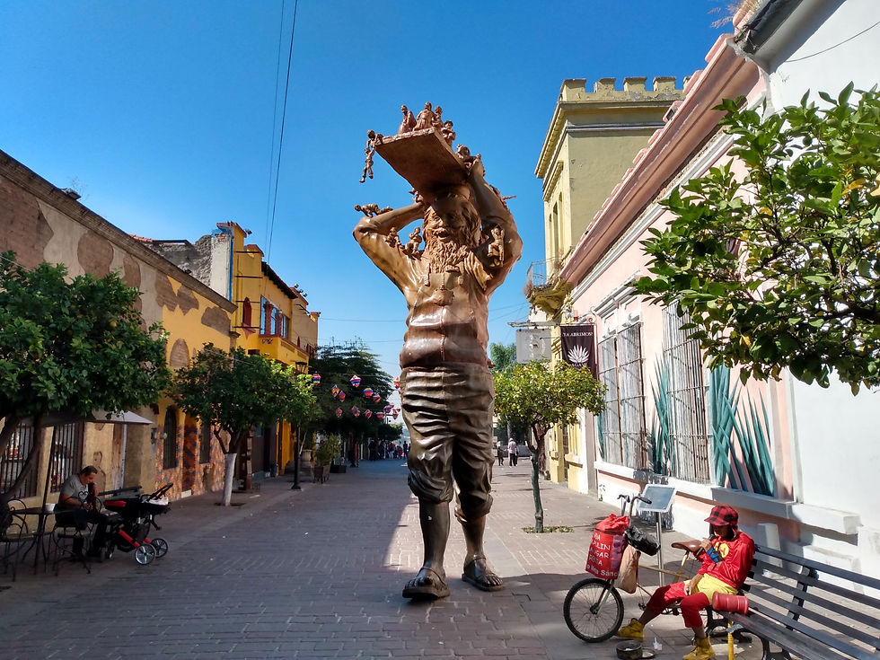 I decided that even though I wasn't feeling great, I would go visit the Tlaquepaque neighborhood. I caught an Uber, and it dropped me off in the main square. A VERY cute town with lots of art. They call them "pueblo magicos" or magic towns, and they are all over Mexico. Most things were open here, even though it was Christmas day. Here on the square are the major sites--Parroquia San Pedro Apóstol which is a church built between 1670 and 1813, and the Santuario de Nuestra Senora de la Soledad, constructed in the 18th Century.
