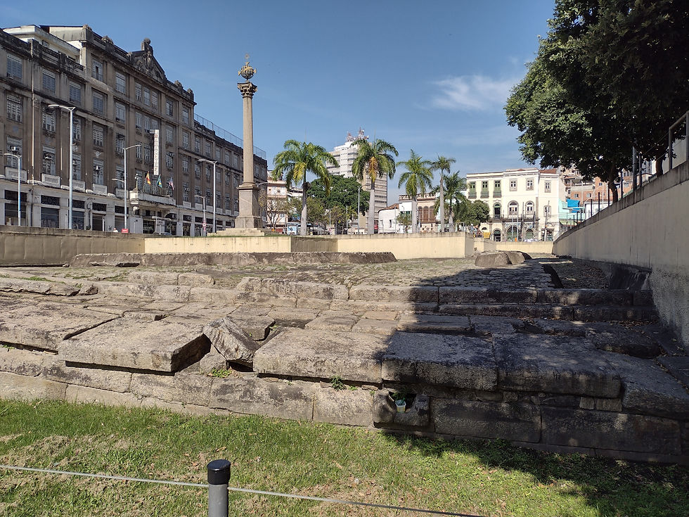 We then walked to the Cais do Valongo which was the original port of Rio, but has been filled in with dirt and now has buildings. They recently uncovered the original port area which was the entry point for slaves in the 1800s. The original port building is there as well--she thinks they are turning it into some kind of museum. You can see the original favela (favela is a plant) called Providencia ahead of us.